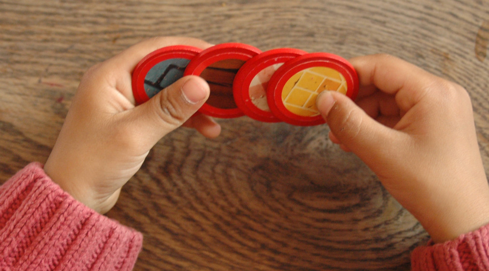 Si je choisi le jeton Napperon, je peux échanger ma coccinelle napperon contre une des autres coccinelles. Ici le joueur cigale pourra penser que je vais viser les 3 cartes « bois »