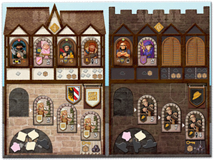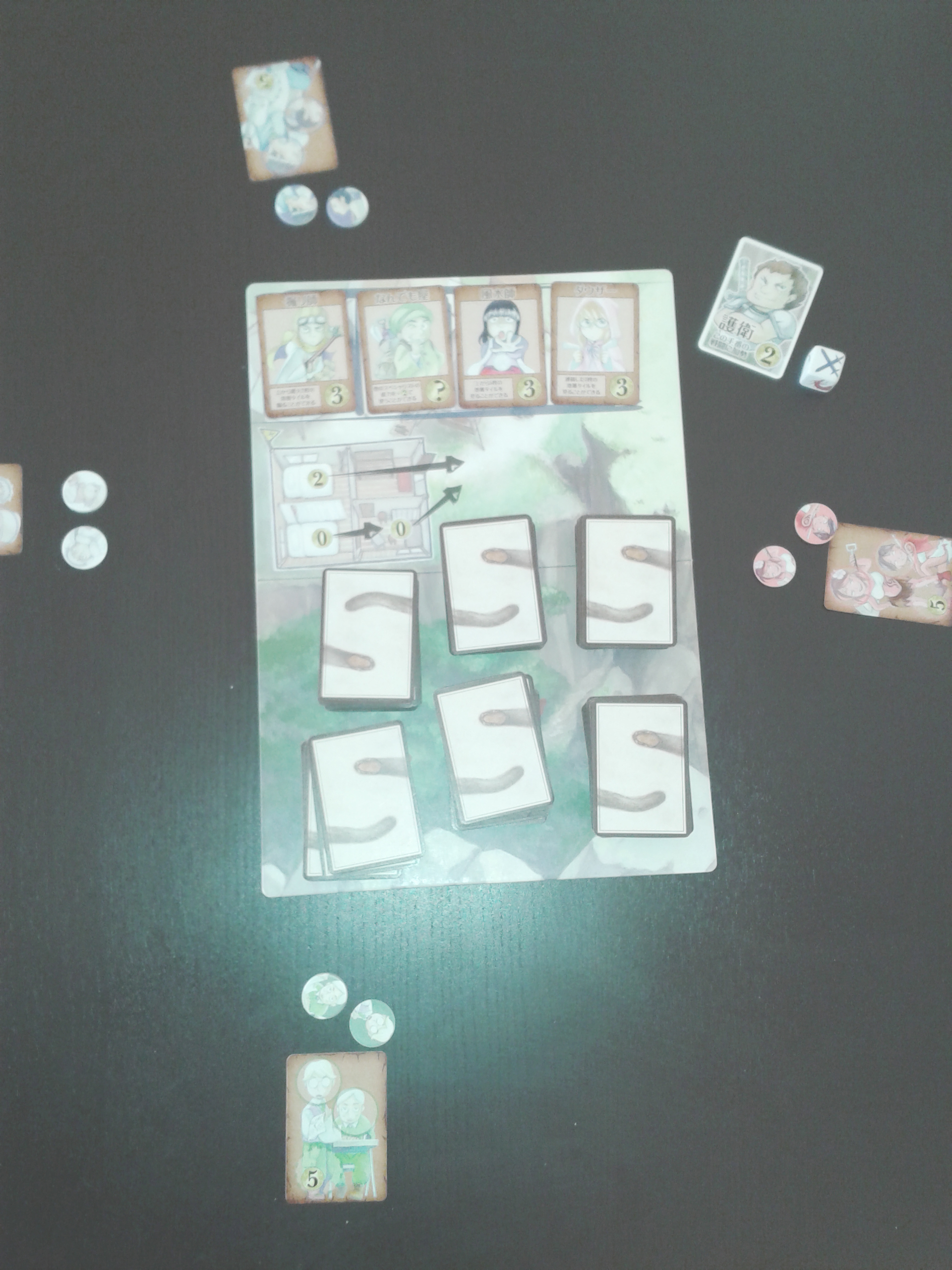 D’autre part, un bâtiment permet d’annuler les dés pour empêcher les adversaires de charger, ce qui a tendance à être assez contre-productif. Au final, les ressources s’entassent bien souvent derrière les paravents, et les lieux de récolte s’activent alors à vide, ce qui peut paralyser quelque peu le jeu. |