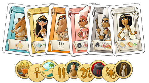 C’est, pour commencer, un bel exemple de valorisation en masse, puisque la valeur d’un lot se calcule par une multiplication entre nombre de cartes du lot et nombre de symboles Scarabée sur ces mêmes cartes. De plus, poser un lot coûte une unique action quel que soit le nombre de cartes le composant. La tentation est donc forte de retarder ses poses, en espérant toujours des lots plus importants. En plus de tout cela, deux vilains Scribes sont en circulation : ils ont pour effet de réduire la main de tous ses adversaires à 6 cartes. Certains épiciers un peu trop gourmands s’en souviennent encore ! |