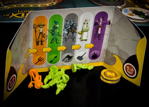 Autre facteur assez évident : lorsque l’on dispose déjà de deux Seigneurs à clefs accordant un avantage permanent, on a plutôt intérêt à différer au maximum l’acquisition sa troisième clef. Le résultat de cette pratique couramment adoptée est donc parfois un milieu de partie attentiste, avec de longues phases où les joueurs explorent à répétition, accumulent énormément d’Alliés en attendant que la file soit renouvelée avec des Seigneurs plus optimaux. Même l’incitateur d’une perle pour le joueur qui se dévoue peut peiner à débloquer la situation. |