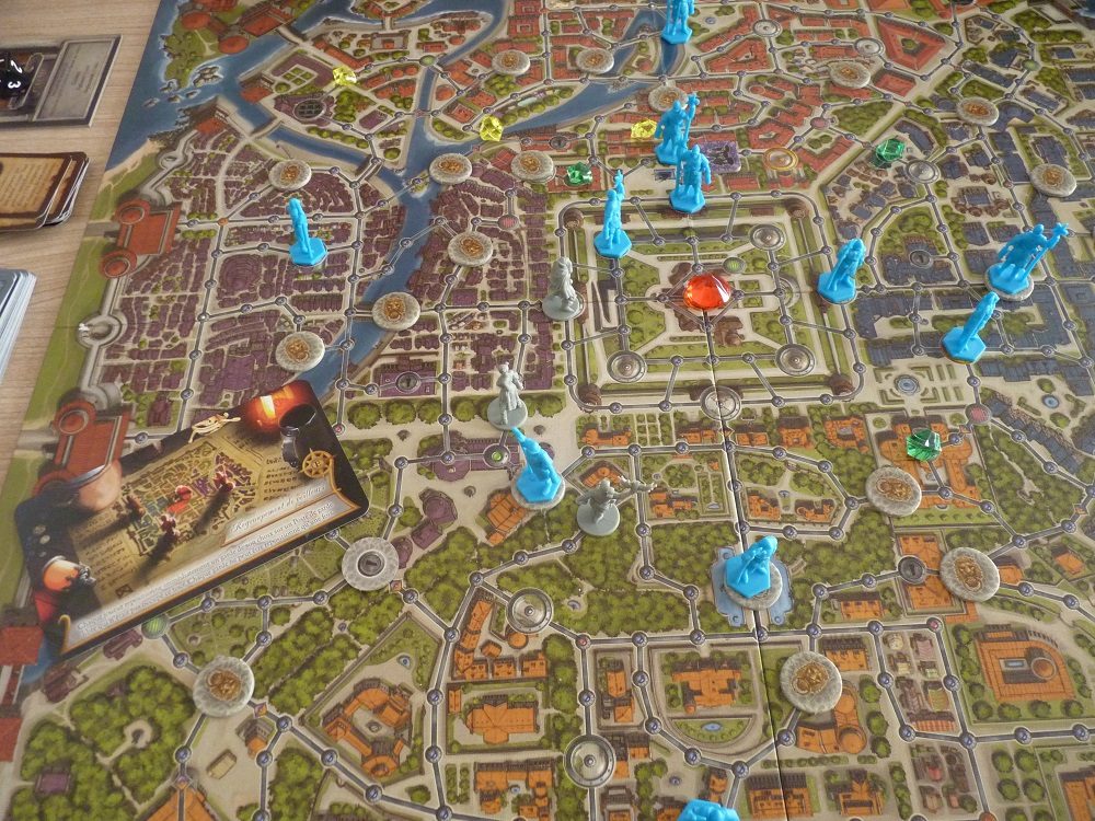 Les voleurs disposent de 10 tours au maximum (la milice est en état « calme« ) durant lesquels l’un d’entre eux doit prendre possession du Joyau ; si personne n’y parvient dans ce délai, la partie est perdue pour tout le monde, le temps restant pour quitter la ville étant insuffisant pour mener le larcin à son terme.
