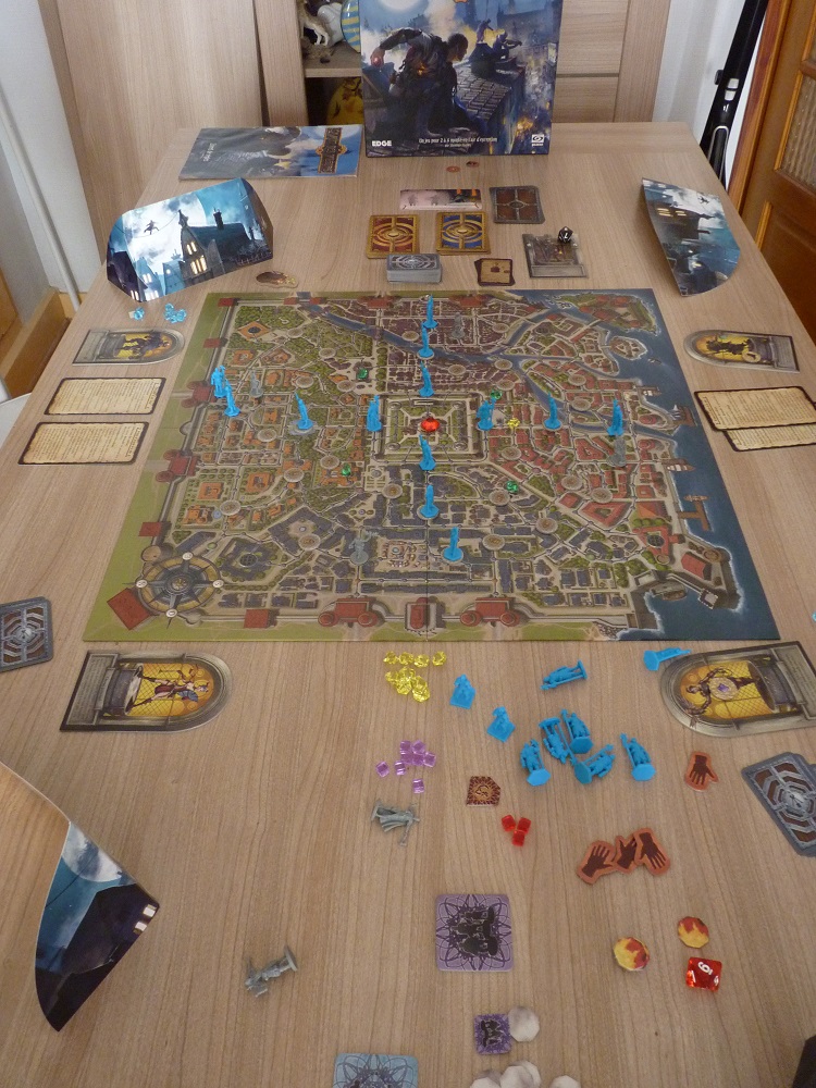 Ma séparation avec le jeu La Cité des voleurs n’a pas été un moment agréable, mais son aléa extrêmement présent avait fini par m’inciter à demander le divorce. Pensez donc, la boîte était prisonnière d’un de mes placards depuis des lustres, et j’avais peur de voir débarquer les forces de l’ordre, désireuse de m’enfermer pour séquestration (!). Ce fut donc au plus grand dam de mes enfants que nous prenions, la boîte et moi, des chemins différents. Cette décision radicale avait néanmoins créé en moi une sorte de vide que j’aspirais à combler à la moindre occasion. C’est pourquoi, lorsque j’appris que Edge s’occupait de la version française du jeu La Nuit des voleurs, mon coeur se mit à battre à tout rompre.