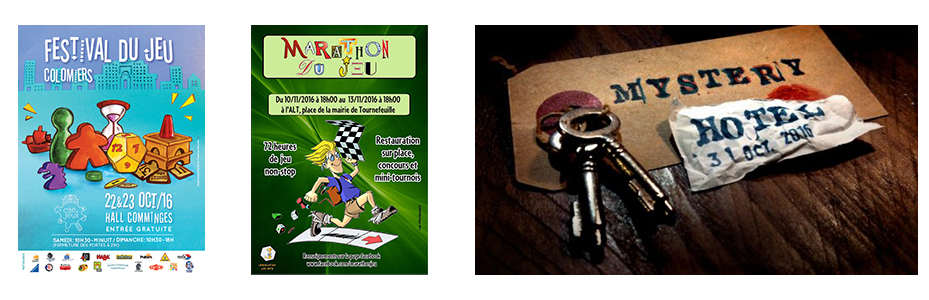 Enfin, je termine avec un festival du côté de l’Aude : le festival de Lignan sur Orb organisé par la ludothèque le pion virgul, qui se déroule du mercredi 26 octobre au 29 octobre. Des jeux pour les petits, mais aussi pour les grands. Romaric Galonnier, l’auteur de Yesss et Casting, sera là pour dédicacer ses jeux. Buvette, snack et boutiques de jeux, puisqu’il y aura « La cachette d’Arthur » et la « Ludik Boutik » (allez-y de ma part !).