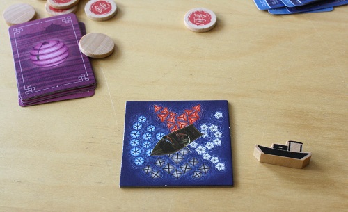 Lorsqu’on place une tuile, on obtiendra une carte lanterne correspondant à la couleur qui nous fait face, mais chaque joueur aura également le droit à sa carte, en fonction de l’orientation de la tuile.