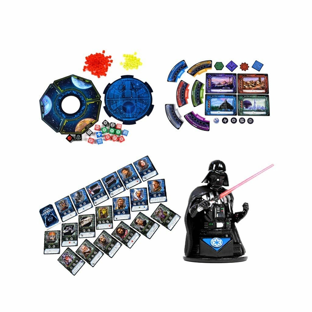 The Op, c’est le nouveau nom d’un « petit » éditeur, USAopoly. Oui, l’éditeur de Monopoly ! Voici venir leurs deux nouvelles créations dans la langue de la chocolatine, propulsées chez nous par Lucky Duck Games. Star Wars Dark Side Rising (de Patrick Marino, Andrew Wolf) et Thanos Rising Avengers infinity Wars (Andrew Wolf seul).