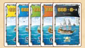 10 nouveaux bateaux (2 de chaque couleur), 14 nouveaux personnages (5 fonctionnaires, 4 artilleurs et 5 vice-amiraux), et 18 cartes Contrats (le moelleux de l’extension) ainsi que des cubes en bois colorés, parce que c’est plus festif.