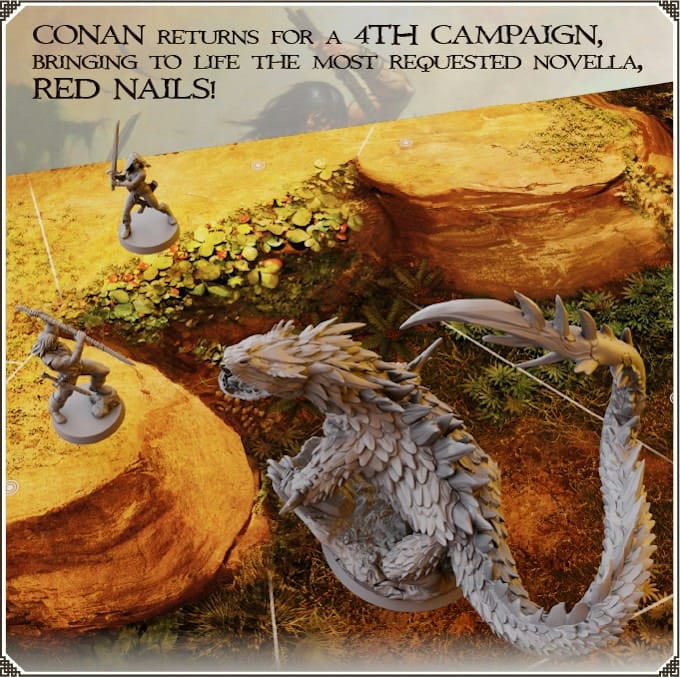 La maison Monolith a relancé une campagne pour son premier jeu Conan (Frédéric Henry), et vous avez encore trois jours pour faire un tour sur le projet en cours. Cette campagne offre un reprint du jeu de base ainsi qu’une nouvelle extension (Red Nails).