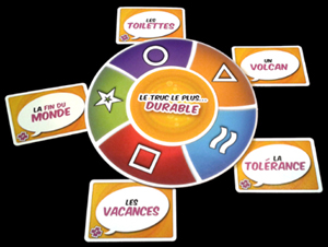 Avec leurs cartes, les joueurs 1, 2 et 3 ont désigné le truc placé devant l’étoile (sur le fond vert du plateau circulaire).