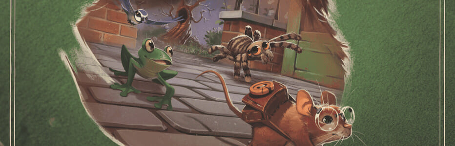 Les enquêteurs sont quatre : Sorbier, un oiseau vif et discret, Acajou, une souris observatrice, Limon, une grenouille au verbe haut et Calebasse, une tarentule un peu (ok, très) énervée. Et ces personnages-joueurs, répartis autour de la table, ont chacun leurs forces. À vous de savoir qu’il faudra employer Calebasse pour tirer de la toile sur un objet ou pour combattre. À vous d’envoyer Sorbier dans les cieux… à vous de choisir judicieusement. Les irrégularités de ce cast de personnages permettent de valoriser divers comportements, diverses approches, et fonctionnent donc très bien car s’inscrivent dans la narration : le jeu répond à ce que vous faites. Si vous réalisez une action avec Calebasse, elle sera employée dans le texte indiquant le feedback de votre action. Mais attention, que l’on ne s’y méprenne pas : on est dans les rails de l’intrigue. Et dans ce cast, Sorbier et Acajou sont très plats, là où Calebasse prend plus de place : c’est elle qui a les moments drôles, les traits d’esprit les plus inspirés. Cette araignée antisociale rappelle une des règles fondamentales de la dramaturgie, à savoir que les personnages ne brillent que par leurs réactions à des situations données.