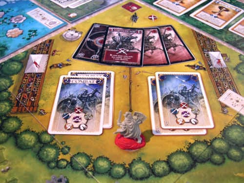 Le tournoi contre le Chevalier Noir sur le plateau principal. photo Jeuxdenim.be – Les Chevaliers de la table ronde – Days of Wonder, 2005