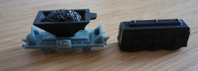 De plus, les wagons étant plus grands que l'édition standard, il est plus difficile de les utiliser sur les autres cartes de la série (sans problème jusqu'aux routes de taille 6, après ça commence à être un petit peu serré sur le plateau). Mais très honnêtement, au vu du résultats final, le jeu vaut tout à fait son prix.