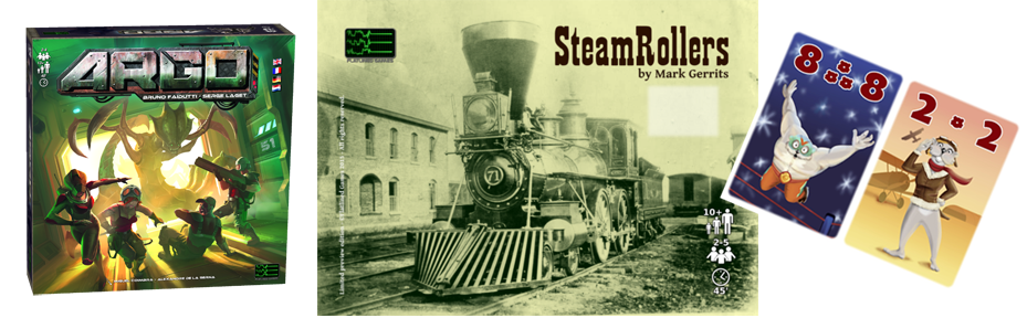 Argo un jeu de Faidutti-Laget qu’il nous avait présenté à PEL (une autre vidéo, à voir ici) devrait donc passer par la plateforme de financement participatif d’ici peu. Et pour Essen, c’est deux petits jeux qui sont prévus en tirage limité et disponibles uniquement en précommande sur le site Flatined.