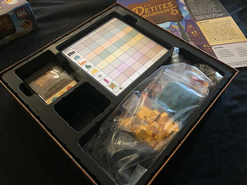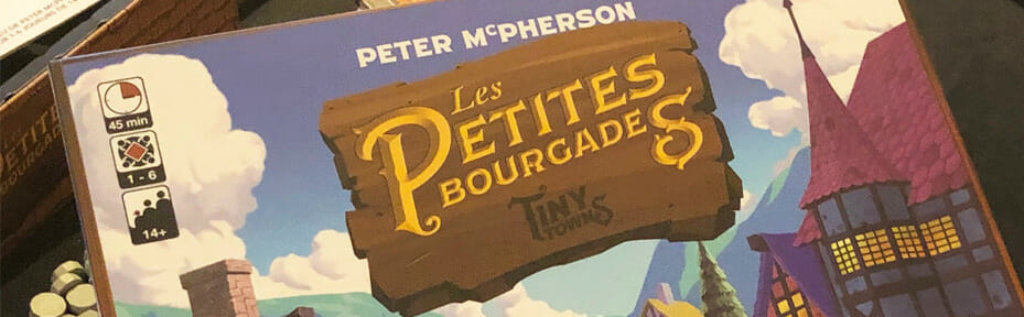 Tiny Towns ne pouvait pas s’appeler Tiny Towns. Entre Little Town et les Tiny de Scott Almes, impossible de s’y retrouver. C’est ainsi qu’il débarque chez nous sous le pseudonyme des Petites Bourgades. Petite ? La boîte ne l’est pas tant que ça. Faut dire qu’il y a du meeple personnalisé en vrai bois d’arbre pour 1 à 6 joueurs à l’intérieur.