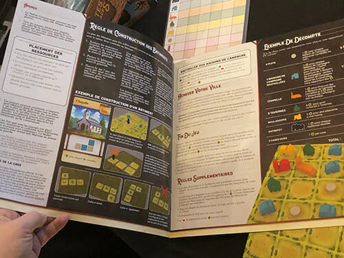 Pour le reste, c’est un sans faute : le livret est parfait, les cartes sont lisibles et agréables, les meeples pratiques et réussis, le look du jeu une fois la partie finie est plaisant à l’œil. Surtout, ces petites bourgades offrent un vrai challenge avec trois fois rien de règles, ainsi qu’une rejouabilité assurée par une grande combinaison de cartes, ce qui fait de lui un jeu passerelle / grand public taillé pour se faire une place. Nous verrons s’il transforme l’essai et tient sur la longueur dans un futur Test !