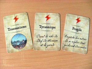 La durée de vie du jeu est bonne, les combinaisons formées par les cartes « coups durs » étaient différentes à chaque partie, genre : « Je suis entêté, donc je ne peux me retirer de la mission que si j’ai moins de deux cartes en main. Mais comme je suis aussi frénétique, je tire deux cartes de plus au début du tour… on est mal barré ! ».