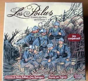 Les Poilus est un jeu coopératif pour 2 à 5 joueurs, édité par Sweet November en partenariat avec le musée Historial de la grande guerre, sur le thème de la première guerre mondiale. Pour autant il ne s’agit pas d’un wargame. Soyons clair : en jouant aux Poilus, vous n’aurez pas l’impression d’être un soldat avec un fusil à baïonnette dans les mains. D’ailleurs, contrairement à la plupart des jeux de guerre, l’objectif du jeu n’est pas de « gagner » la guerre, juste de la traverser. Vous et votre bandes de potes. Vivants.