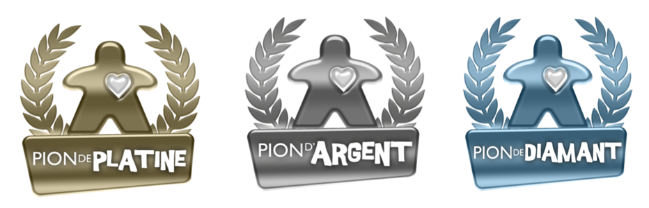 Pour le pion de Platine, à partir de 1 million d’exemplaires vendus : Défis Nature (double Pion de Platine), 7 Wonders, Quarto, Quoridor.