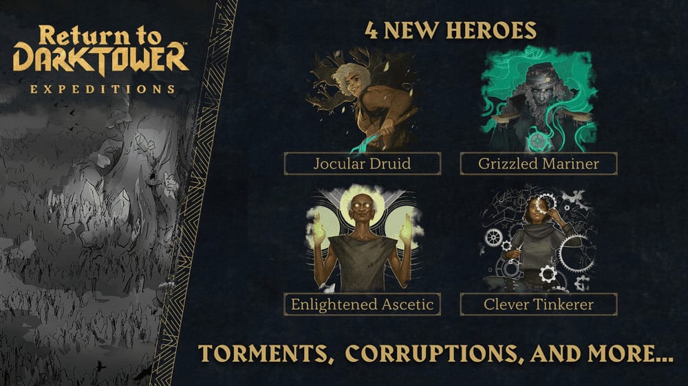 Quatre nouveaux héros viendront étoffer les rangs des aventuriers. La campagne inclura également des réimpressions du jeu original et de ses extensions. Si vous souhaitez en savoir plus sur Return to Dark Tower, nous vous proposons le Ludochrono et l’article Just played.