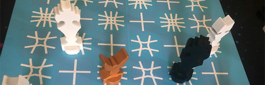 C’est d’ailleurs une légère évolution des règles depuis sa sortie, car dans l’ancienne version on déposait le Mana (une tige qui s’insérait dans un cône) sur le pion que l’on venait de jouer, il n’avait pas cette fonction de blocage. Cette petite évolution peut ajouter un peu de temps mort, le joueur réfléchissant ou placer l’oiseau pour contraindre un peu plus l’adversaire, néanmoins il ajoute un élément tactique. Pour plus de fluidité je conseille de le placer sur son pion au début, car l’oiseau n’a que peu d’impact au commencement et la partie avançant de s’en servir de blocage.