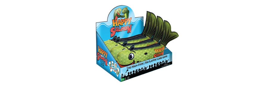 Il y a des buzz qui ne s’expliquent pas. Le fait que la convention BGG (Boardgamegeek) mette des jeux comme Karuba ou Codenames à l’honneur ne surprendra plus personne. Mais quand on voit Happy Salmon faire le buzz, là, on se demande un peu d’où ça sort (tout en étant ravi de pouvoir être ainsi pris au dépourvu). Happy Salmon jouit d’un packaging folklorique et d’un gameplay fun (qui n’est pas sans faire un peu penser à Check! dont nous vous avons parlé récemment – cf la fin de ce JP -), et il ne lui en fallait pas plus pour sortir la tête de la rivière ininterrompue des nouveautés.