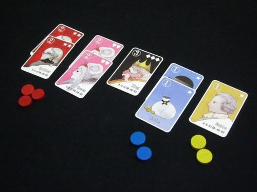 Ensuite, on compte le total de points pour la royauté (le roi et la reine) et on annonce notre total à haute et intelligible voix. Celui qui a le total noir (roi) va prendre le jeton 1er joueur. Ceux qui ont le total rose (reine) le plus bas vont devoir payer autant de points qu'il y a de joueurs, points qui iront à celui ou ceux qui ont le plus de points roses.
