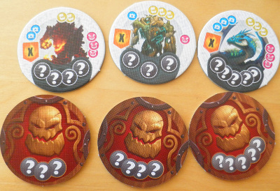 Tuer un monstre rapporte deux des trois récompenses (au choix du prétendant: étages de tour des mages, bardes ou or), et bien souvent, le choix est difficile. Certaines tuiles sont moins avantageuses sur certains aspects, mais on peut vraiment avoir besoin de ce que ça nous rapporte, même si c’est en quantité minime !