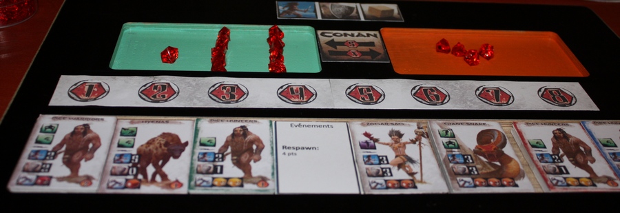 Voici l’essence des règles. Le reste n’est que la description des différentes aptitudes de chaque héros/monstre (comme celle de Conan, de défoncer les murs des huttes ! Ou celle de Zendar à lancer des sorts…). Simple, non ?