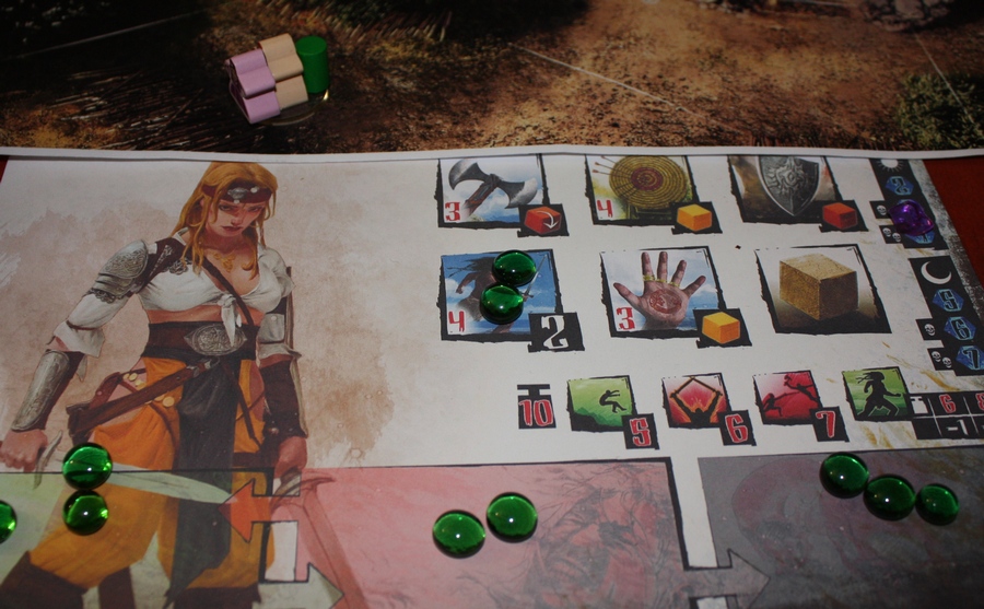 – Les dés, parlons-en, ils sont différenciés et ne donnent que des valeurs entre 0 et 3, et ont donc une variance faible, sur laquelle on peut compter en général. Cela n’empêche pas des coups puissants et des loose royales. C’est un très bon compromis pour les allergiques au hasard comme moi !