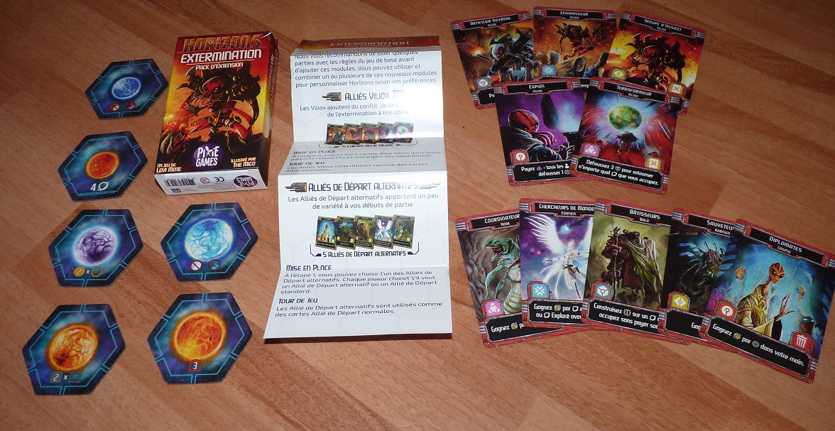 Horizons est un jeu classé 3X mais qui s’adresse (contrairement au simple X) à un large public. En début de partie, chaque joueur part avec quelques ressources (on va rarement explorer l’univers nu comme un ver) et un allié, avant de chercher une planète à placer en orbite autour d’une étoile. Ensuite, il s’adapte (nous verrons cela plus tard) à cette planète.