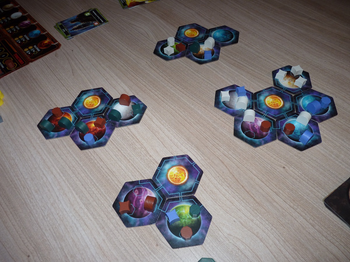 Le joueur suivant fait de même, en disposant une nouvelle planète autour d’une autre étoile, puis choisit un type de planète déjà en place afin de s’y adapter. Quand tout le monde a terminé, la partie commence réellement.