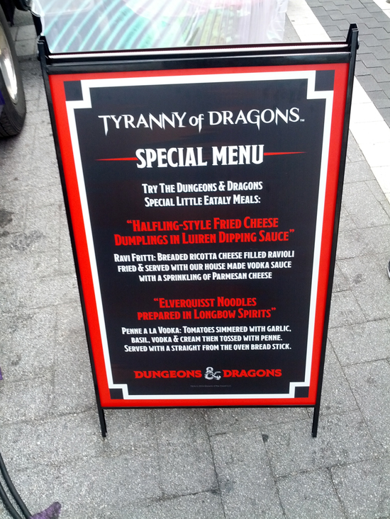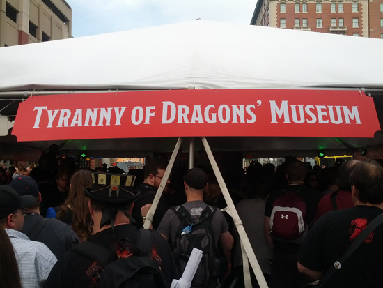 Nous sommes ensuite allez à la soirée D&D Tyranny of the Dragons qui pris lieu dans les rues devant le Convention Center. Il s’agissait d’un gros événement marketing non sans humour (j’ai pu prendre en photo une crotte de dragon au musée des dragons ^^).