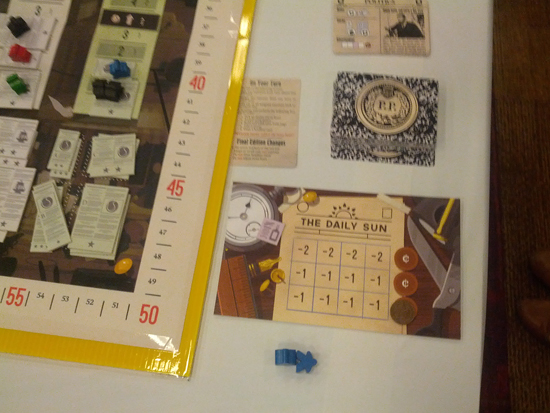 Dans Penny Press, vous incarnez un journal qui doit créer des Unes avec différents articles. Le jeu semble malin et il sera disponible en octobre…mais malheureusement il ne faut vous attendre à les voir à Essen.