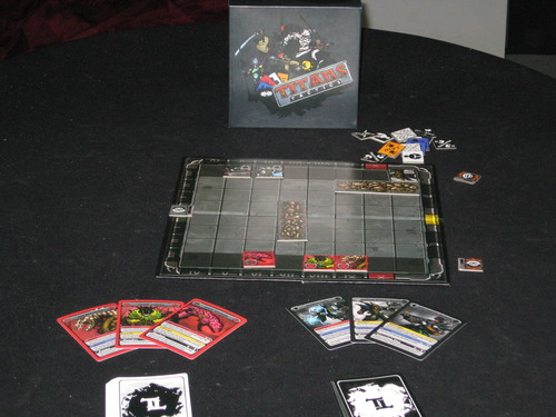 Nous entrons dans la hall des éditeurs pour se voir expliquer Titan tactics. Il s’agit d’un jeu d’ affrontement à deux joueurs aux mécaniques sympa et à la durée courte. Les personnages ne meurent pas mais, en prenant des dégâts donnent l’avantage à l’adversaire. Si un joueur à 3 fois l’avantage durant la partie, il gagne.