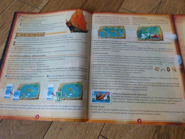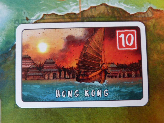 Les quelques manques de la règle sont assez énervants : même pas d’indication du nombre de couleurs ni d’exemplaire de chaque (merci Alstar d’avoir compté…) ni de comment faire pour aller piller Hong-Kong (véridique : on a cherché longtemps).