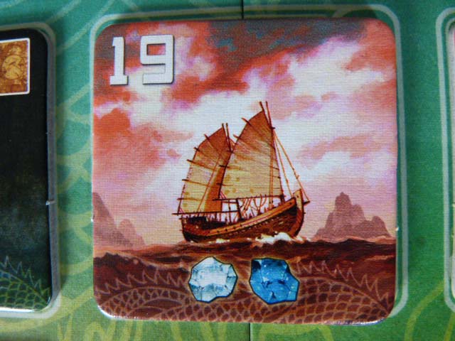 Le fait d’arrêter ainsi une expédition vous en fait recommencer une autre aussitôt avec la carte que vous venez de jouer. Et votre jonque est replacée, après avoir récolté votre butin, sur la première case du plateau principal.