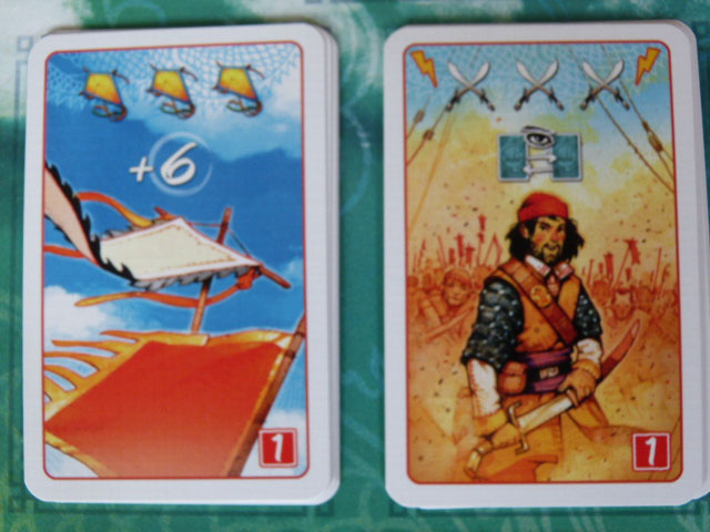 Bien évidemment, plus vous irez loin lors de vos expéditions (c’est-à-dire plus le chiffre sous votre jonque sera élevé), plus la valeur de votre butin sera importante. A ce sujet, en plus de l’or ou des joyaux que vous pillerez, vous aurez la possibilité de prendre des cartes « Rencontres ».