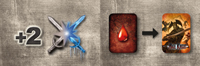 On achète des nouveaux pouvoirs sous forme de carte à ajouter à notre deck lorsqu’on passe de niveau, ou bien qu’on se trouve sur le bon endroit pour apprendre la compétence (un monastère) ou le sort (une tour des mages). Ces sorts et ces compétences avancés sont tellement puissants qu’ils vont influencer notre façon de jouer la suite de la partie. Lorsqu’on a un énorme sort boule de feu dans la main, on sait qu’on peut cramer a distance n’importe quel ennemi qu’on trouvera dans un donjon par exemple, et du coup on va se jeter sur ces opportunités.