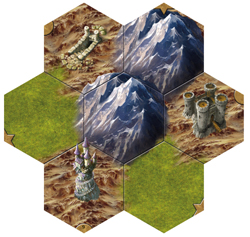 · du mouvement qui permet de se déplacer sur le plateau de case en case, et aussi d’explorer le terrain inconnu en tirant des tuiles et en les plaçant au bord du terrain déjà exploré. Evidemment, les différentes cases de la carte ont des caractéristiques particulières, ce qui fait qu’elles sont plus ou moins faciles à traverser