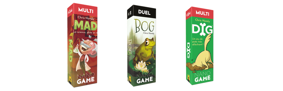 Ça commencera le 1er novembre avec la sortie de Dig, Bog et Mad. Tous ces jeux sont signés Chris Handy. Certains d’entre eux avaient eu une localisation française chez Oya il y a quelques années.
