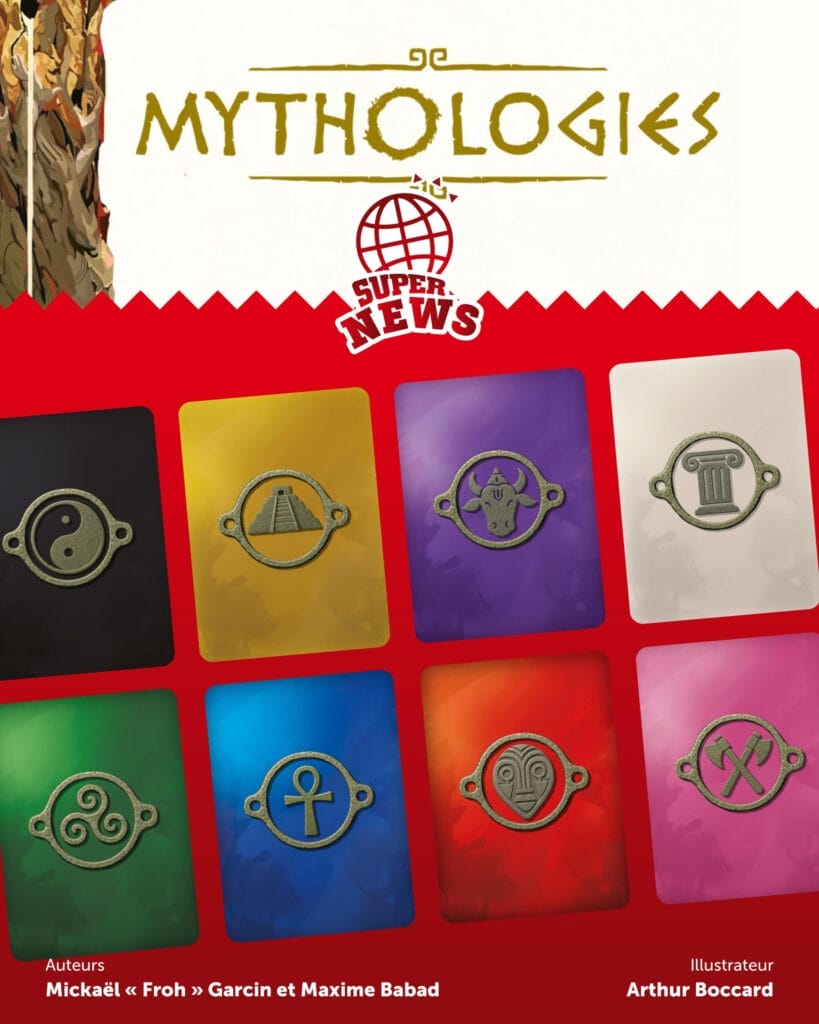 Max : J’avais déjà eu affaire à Charles-Amir et Philippe pour leur présenter d’autres projets. Et même si ça n’était pas allé au bout, ils étaient toujours très pertinents dans leurs retours et prenaient le temps de revenir voir la version suivante après avoir rebossé ma copie. Ce n’est pas toujours évident pour les éditeurs de nous consacrer du temps pour tester un proto, alors là… j’ai compris que j’avais affaire à deux vrais passionnés. C’est pour ça que quand, avec Micka, on a commencé à chercher un éditeur pour Mythologies, Super Meeple était en haut de la short list (pour ça et parce que leur logo déchire !).