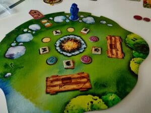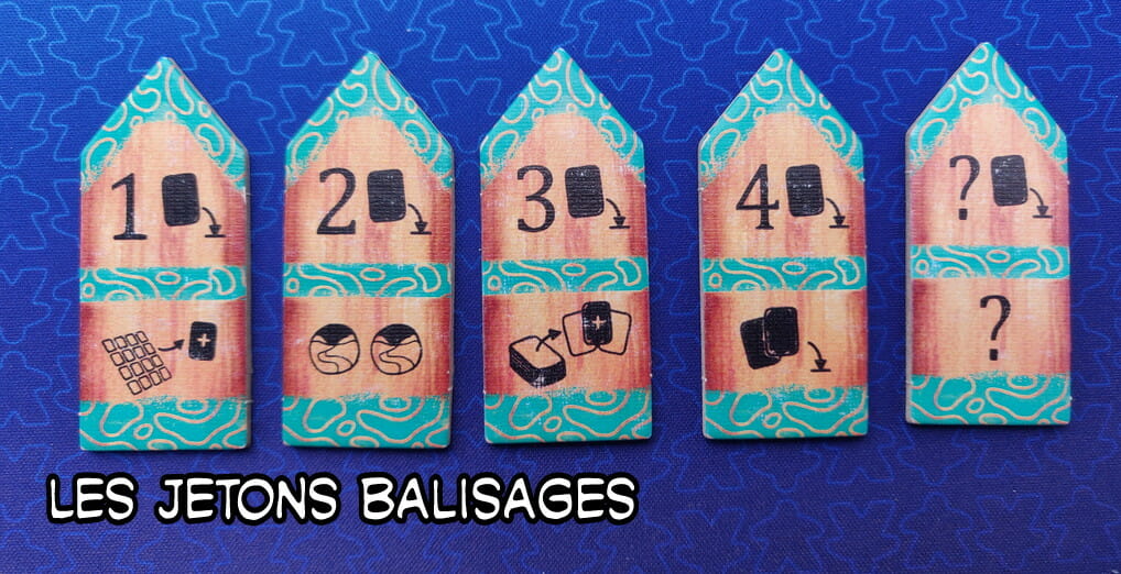 Un emplacement utilisé est bloqué pour les autres joueurs. On est sur une mécanique de pose d’ouvriers, à première vue assez classique, mais un peu plus poussée tout de même. En effet, les pions Balisage sont tous différents, et il y aura un choix à faire dans leur ordre de placement et utilisation.