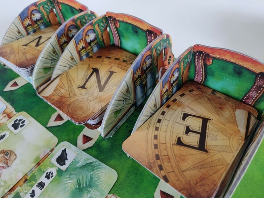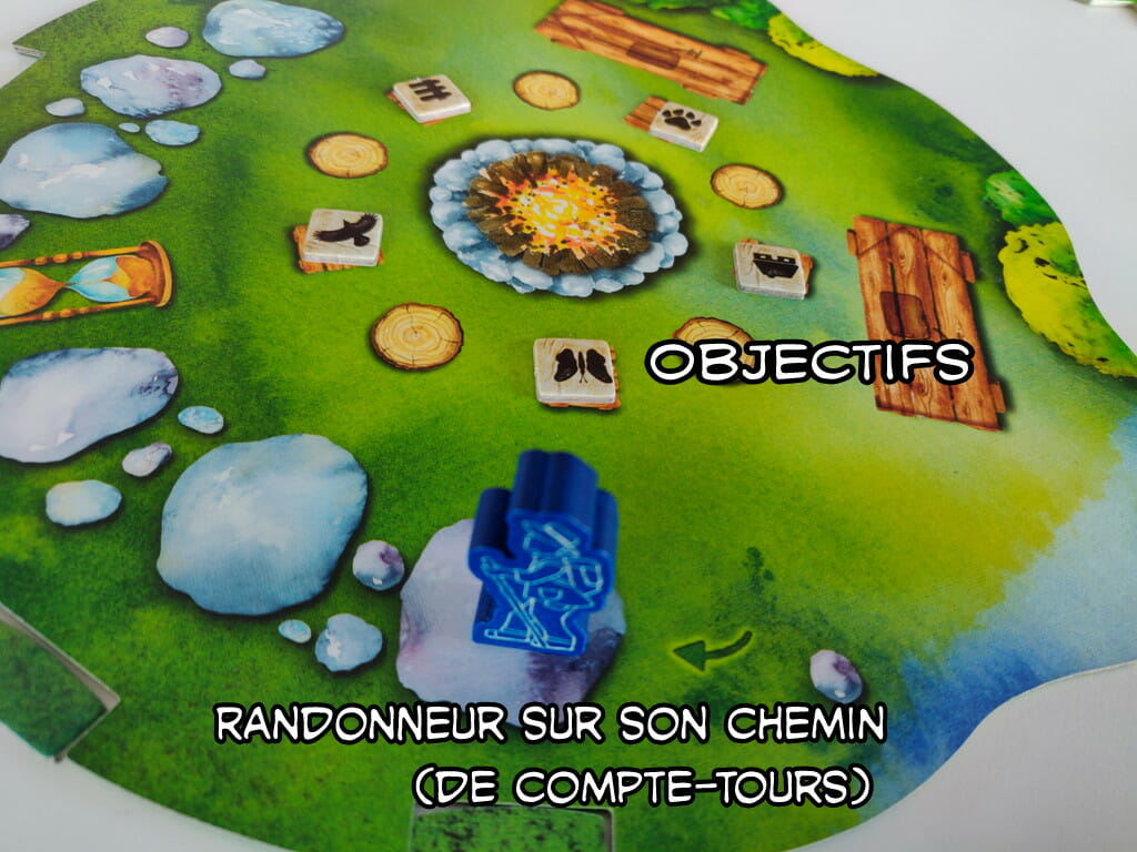 Un plateau central servira de zone de marché pour récupérer les cartes de votre promenade. 12 cartes seront toujours disponibles, mais il ne sera pas toujours possible de récupérer la carte convoitée. Un second plateau permettra d’activer les actions spéciales et de récupérer quelques objectifs. Enfin, chaque joueur dispose de sa zone de jeu pour placer tout ce qu’il aura observé lors de sa marche.