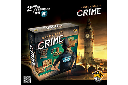 Chronicles of Crimes est un jeu de David Cicurel qui va être lancé sur kickstarter par l’éditeur Lucky Duck Games (Vikings Gone Wild et ses extensions ou Fruit Ninja). Un jeu d’enquêtes avec une application, des mini lunettes de réalité virtuelle Homido et des QR codes à flasher.