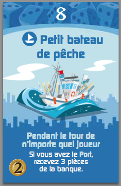 Au passage, "Si vous n’avez rien construit pendant votre tour, recevez 10 pièces de la banque." > c'est le pouvoir de la carte Aéroport et non celle du Port qui est "Si le résultat de votre jet de dés est 10 ou plus, vous pouvez ajouter 2 au résultat" qui est bien pratique pour activer des batiments à 13 ou 14.