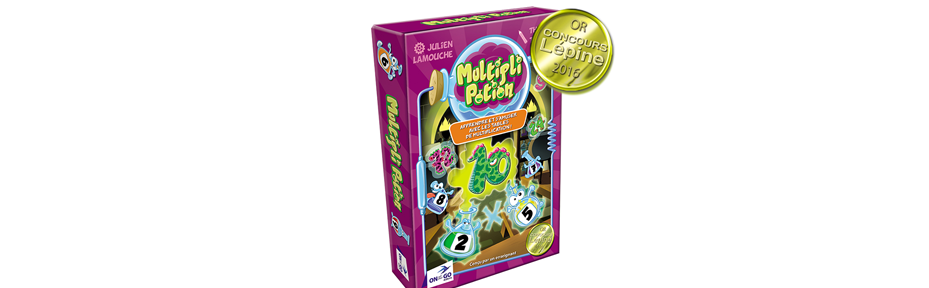 Le jeu au départ s’appelait Forces Multiples. Son auteur, Julien Lamouche, professeur des écoles de son état, cherchait une façon ludique d’apprendre les multiplications à ses élèves de CE2, CM1 et CM2. Forces Multiples remporta la médaille d’or du Concours Lépine et trouva un éditeur en la personne de Grégory Pailloncy, de On The Go éditions, que vous connaissez peut-être pour s’être s’auto-édité avec ses fameuses ChroniCards. Il se trouve que On The Go avait justement décidé de lancer une offre plus diversifiée de jeux pédagogiques (Les Cartacharis est un autre titre déjà dans les tuyaux pour 2017). C’est ainsi que Forces Mulitples est devenu MultipliPotion, un jeu de cartes où le but est d’être le premier à capturer 5 monstres adverses.