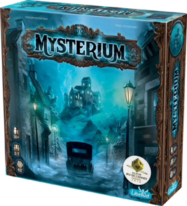 Je découvre à cet instant Mysterium, un excellent jeu de déduction coopératif, As d’or 2016. Dans ce jeu édité par Libellud, un joueur incarne (si j’ose dire) un fantôme et envoie des visions pour communiquer avec les médiums afin qu’ils découvrent l’assassin. Je me souviens être sorti extatique de cette expérience.