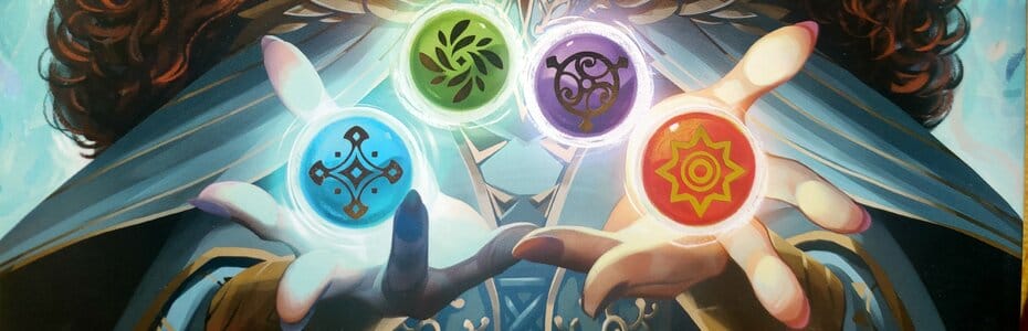J’ai apprécié la mécanique de déplacement/retournement de pile de jetons. Les règles sont simples mais les possibilités d’actions sont grandes, du moins au début, car plus la partie avance, plus le champ des possibles se réduit. Par ailleurs, ce principe de défaite immédiate si on manque d’énergie crée une tension agréable : dès qu’un tour nous coûte 2 ou 3 énergies on a l’inquiétude d’avoir créé un super coup pour l’adversaire. Toutefois, cette gestion de l’énergie prend trop l’ascendant sur les autres aspects du jeu et elle les étouffe, ce qui n’est pas le cas par exemple dans 7 wonders duel, un autre jeu qui combine victoire aux points et conditions de défaite immédiate. Dans Mystria, je me trouve trop contraint par le jeu à focaliser mon attention sur un seul axe alors qu’il propose une grande liberté d’action. Je trépigne comme un cheval avec des œillères. Pas très agréable.