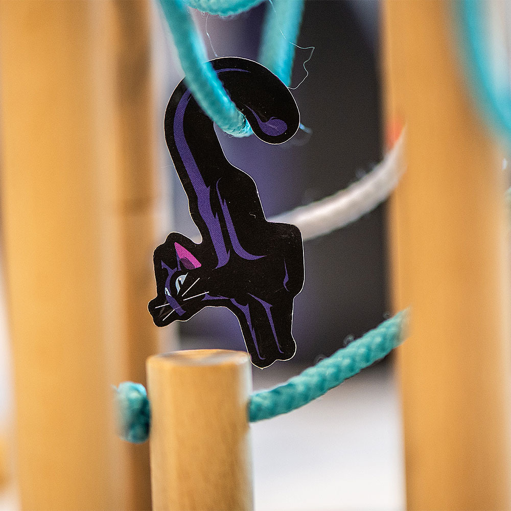 Si vous piochez un cube noir, vous pouvez gentiment le donner à un adversaire qui devra à son tour placer un jeton chat sur un des câbles électriques (photo ci-dessous).
