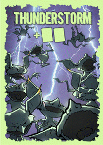 De plus, il existe 3 cartes tempêtes de gremlins qui, quand elles sont retournées, font piocher 2 nouvelles cartes gremlins, puis imposent de re-mélanger la pioche et la défausse des cartes gremlins.