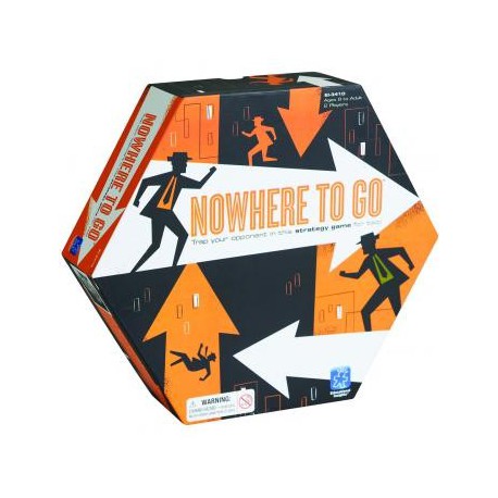 Parmi nos boites de jeux à tester, il s’en trouve une originale de par sa forme hexagonale et sa couleur orange qui flash : Nowhere to go. Pour les anglophobes, « nulle part où aller ». Et c’est effectivement le but de ce jeu, purement destiné à un duel rapide et intense, où il faudra tout faire pour empêcher l’autre de bouger. Le premier à ne plus pouvoir se déplacer est déclaré perdant, tout simplement.